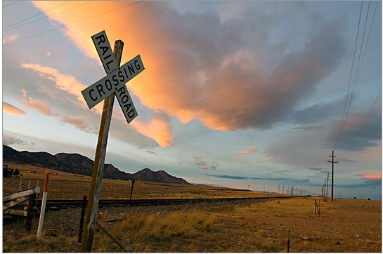 What I am enjoying these days is the online incarnation of some newspapers, particularly those that employ multimedia and narrative writing. One of my mentors, Tom French, has done several huge serial reports for the St Petersburg Times*, but the one-off stories such as the March 8th New York Times article Riding The Rails are just as inspiring and more easily consumable when pressed for time. rr_crossing_outside-boulder-co.jpgThis piece is an interesting short-form narrative, well-reported with occasional first-person interjections for that being-there-with-you feel. The multimedia portion includes images of the amazing landscapes seen while rolling across country and short video clips that allow us to meet some fellow travelers. Is it really just coincidental that only a few days ago I spoke of wanting to travel cross country by train?