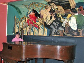 One of the highlights of my trip to NY was going to Minton’s Playhouse. I’ve always wanted to go there and finally followed through this past Saturday. So, here’s Marla trying to imagine what Monk and Horace Silver saw when they were sitting at the piano: