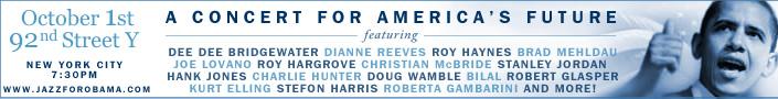 Just as we were about to give a shout out for jazz musicians and jazz fans to get more involved in the November election, we get this notice about this incredible line-up of jazz musicians performing for one night only to present Jazz For Obama, a concert event to benefit Democratic presidential candidate Barack Obama: